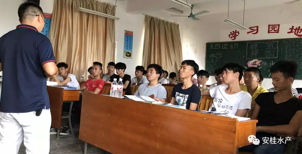 應(yīng)廣西水產(chǎn)畜牧學校領(lǐng)導(dǎo)和老師的盛情邀請,廣西安桂水產(chǎn)公司總經(jīng)理一行專程到校,給即將畢業(yè)的學子傳授多年利用專業(yè)知識為廣西水產(chǎn)事業(yè)作貢獻,為水產(chǎn)養(yǎng)殖客戶高效服務(wù)的經(jīng)驗,受到學子們的熱情歡迎。